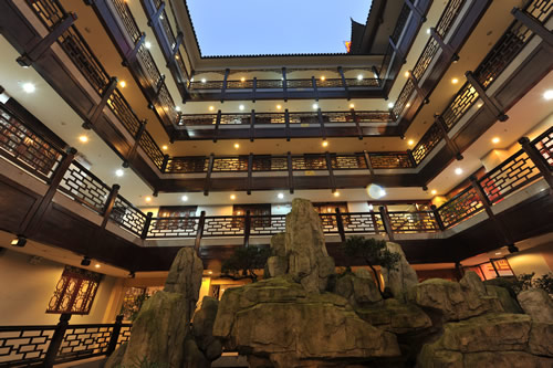 鳳凰鳳廷國際大酒店建筑風格突顯湘西民族民居的建筑風格。以苗家和土家的吊腳樓和四合院為基本元素,用現(xiàn)代居家觀念進行創(chuàng)新解構(gòu)和重組,營造出一種讓外來人能感受到的原汁原味的湘西氣息,讓湘西本土人于陌生中感到親切、于熟悉中感到新鮮的韻味。