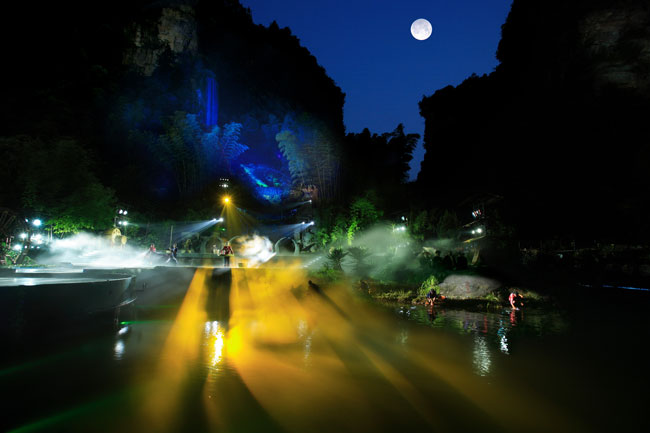 《武陵魂•梯瑪神歌》是一場記述土家族起源、演變、戰(zhàn)爭、生產生活等內容的大型立體山水實景演出,揉合了音樂、舞蹈、文學等多種藝術形式,如幻如夢的舞美燈光,搖曳生姿的原生態(tài)歌舞……濃縮了土家族數千年的發(fā)展歷史,400多名演員以自然淳樸的表演充分的展示了土家的民族文化特征,給游客帶來了耳目一新的感受。一場視聽的饕餮盛宴,一曲驚天地、泣鬼神的曠世古歌,給人山水文化光影視聽的享受。【出品:張家界梯瑪神歌文化傳播有限公司】