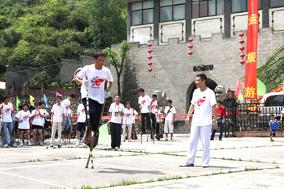 張家界高花燈亦稱高皇燈,是流行于永定沅古坪一帶富有民族特色的舞蹈。表演時(shí),12人至24人不等。配有鑼、鈸、嗩吶、鼓等樂器。每人手中拿一盞紙?jiān)鸁艋\,內(nèi)點(diǎn)蠟燭兩根,頂扎一木偶像,用五色紙剪成戲文故事如“八仙” 、“瓦崗寨”,“梁山英雄 ”之類。高花燈表演有一套程式,要求東起西落,進(jìn)一個(gè)“半邊月”,出一個(gè)“月團(tuán)圓”,舞個(gè)“太極圖”。亦可進(jìn)民房表演,叫“愿燈”,多為祝福、還愿或?yàn)槟臣蚁彩聹惾。打吆喝、打口哨則只能到戶外表演,叫“眾燈”,是讓大家看的。其形式又分民燈、戰(zhàn)燈。前者表演 古代先民的遷徙、繁衍、勞動(dòng)、生活;后者表演打仗破陣。隊(duì)形變化有“織籬笆”、滾柱頭”、“十八斗”、“螺螄轉(zhuǎn)頂”、“八卦陣”、“過天星”、“一字長(zhǎng)蛇”等二十余種。如破“象棋盤陣”,主人插三十二根香,擺成棋盤陣,表演時(shí),主人舉紅傘,玩燈者舉黑傘,從河道進(jìn),將眾“子”一一吃掉(即踩香),這是斗智的競(jìng)賽。只見燈火如流星般穿插舞蹈 ,旁邊配以龍燈互舞(配龍玩燈,是高花燈的主要特點(diǎn)之一),那激起的鑼鼓聲、吆喝聲、口哨聲,掀起有節(jié)奏的聲浪,熱烈而歡快。 張家界高花燈發(fā)祥于張家界市永定區(qū)沅古坪鎮(zhèn)等地區(qū),與沅古坪地區(qū)接壤的沅陵、桃源、慈利等周邊區(qū)縣也有少量玩高花燈的習(xí)慣。 高花燈的燈代表著光明幸福,12個(gè)燈表示12個(gè)月,月月平安無事。每年春節(jié),每個(gè)村寨都要操練一班高花燈,辭舊迎新。制作時(shí),藝人用竹篾和紙?jiān)?2或24個(gè)燈籠,在燈籠下加上一個(gè)長(zhǎng)柄燈托,并在燈籠上扎上五顏六色的“故事”,如“八仙”、“耿氏送子”等。夜晚,在燈籠里點(diǎn)上木油臘燭,一人舉一個(gè)燈籠,邊舞邊組成多種隊(duì)形。一眼望去,流光閃爍,尤如銀河戲舞。 張家界高花燈不但為本鄉(xiāng)本土的觀眾所喜愛,而且受到海內(nèi)外朋友及國(guó)際友人的高度贊賞。因?yàn)樗侵袊?guó)古老的民間舞蹈代表,它以自成體系的記譜方法,延繼著中國(guó)舞蹈的血脈,以其悠久的舞蹈歷史和多元文化特征,被舞蹈界認(rèn)為是“中國(guó)舞蹈歷史上的活化石”,極具學(xué)術(shù)研究?jī)r(jià)值和很高的審美價(jià)值。已列入全省第一批非物質(zhì)文化遺產(chǎn)保護(hù)名錄。 高花燈相傳起源于東漢章帝初年,時(shí)“ 中蠻”覃兒健在澧水中下游舉義反漢,與漢軍“戰(zhàn)于洪下”(相傳為今大庸紅土坪,待考),洪下“蠻人”用火 把跳舞為義軍吶喊助戰(zhàn),終因漢軍勢(shì)眾,覃兒健與義軍全部戰(zhàn)死(至今留下懸鼓坪、御甲埡、扎營(yíng)山、烽火臺(tái)等古戰(zhàn)場(chǎng)遺跡)。以后,當(dāng)?shù)匦U人每年都必在過 后年(從正月初一至元宵節(jié))打火把集會(huì)跳舞, 栽“ 陽樁”(土話栽跟頭),表示對(duì)“洪下之戰(zhàn)”的紀(jì)念 。久而久之,火把進(jìn)化成燈籠和扎人物事故,表演也 有一定規(guī)矩。至今,這種舞蹈藝術(shù)還保留著古老、原始、粗獷、豪放、悲壯的特色。 |