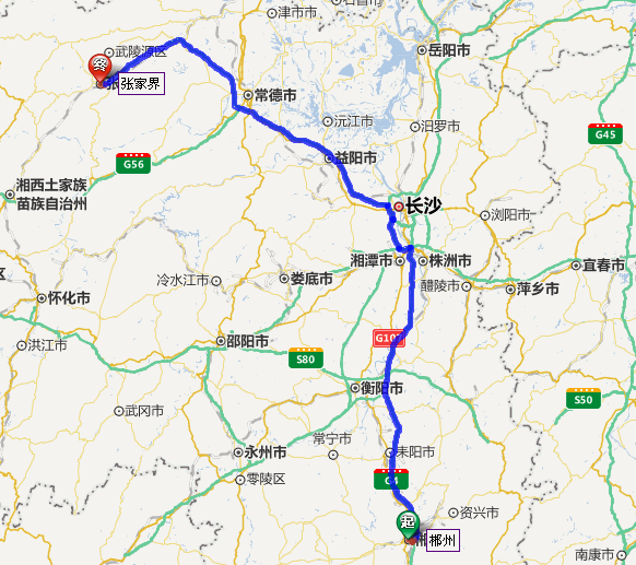 郴州市到張家界自駕車路線圖