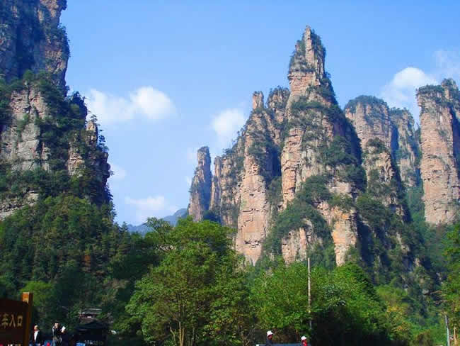 楊家界風景區(qū)東接張家界,北鄰天子山,面積三十四平方公里。楊家界有香芷溪、龍泉峽和百猴谷三個游覽區(qū),其中知名景觀有一步登天、空中走廊、龍泉飛瀑、絕壁藤王、白鶴聚會等二百余處。最高峰“一步登天”海撥1130米。楊家界境內(nèi)溝壑縱橫,溪水長清,植被茂密,森林覆蓋率達95%。
