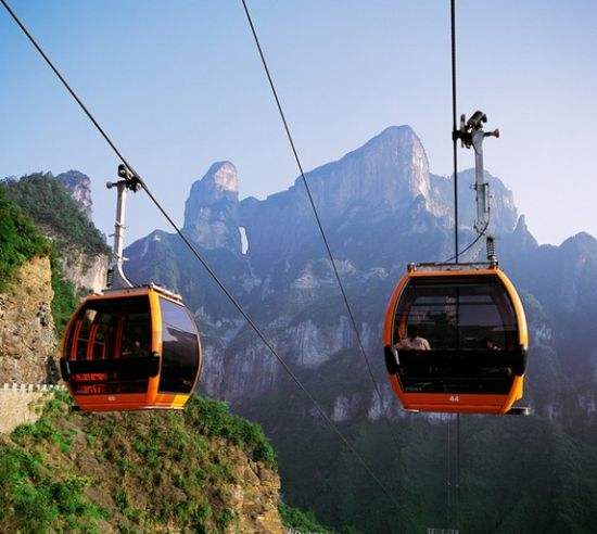 百龍?zhí)焯,垂直高?35米,運行高度326米,由154米山體內(nèi)堅井和172米貼山鋼結構井架等組成,采用三臺雙層全暴露觀光電梯并列分體運行,每臺次載客50人次,運行速度3米/秒,三臺同時運行每小時往返量達4000人次。百龍?zhí)焯莸男藿▽崿F(xiàn)“山上游,山下住”的目標,提供了交通保障,將袁家界天下第一橋、迷魂臺、天懸白練以及烏龍寨、楊家界等絕世美景從幕后推向了前臺,并將天子山、袁家界、金鞭溪等精品旅游線路連為一體,解決了多年困擾景區(qū)的交通瓶頸問題。