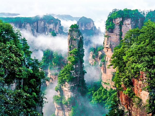 上 午: 張家界市區(qū)乘車(chē)赴武陵源世界自然遺產(chǎn)風(fēng)景區(qū)(車(chē)程約90分鐘),游覽【武陵源核心景區(qū)】(大門(mén)票245+3元),乘景區(qū)環(huán)保車(chē)前往天下第一梯【百龍?zhí)焯荨浚ㄌ焯萜?2元)直達(dá)【袁家界景區(qū)】,觀神兵聚會(huì)、后花園、天下第一橋,電影《阿凡達(dá)》外景拍攝地——“哈利路亞山”探尋影視阿凡達(dá)中群山漂浮、星羅棋布的玄幻莫測(cè)世界;參觀云霧繚繞、峰巒疊嶂、氣勢(shì)磅礴的迷魂臺(tái);